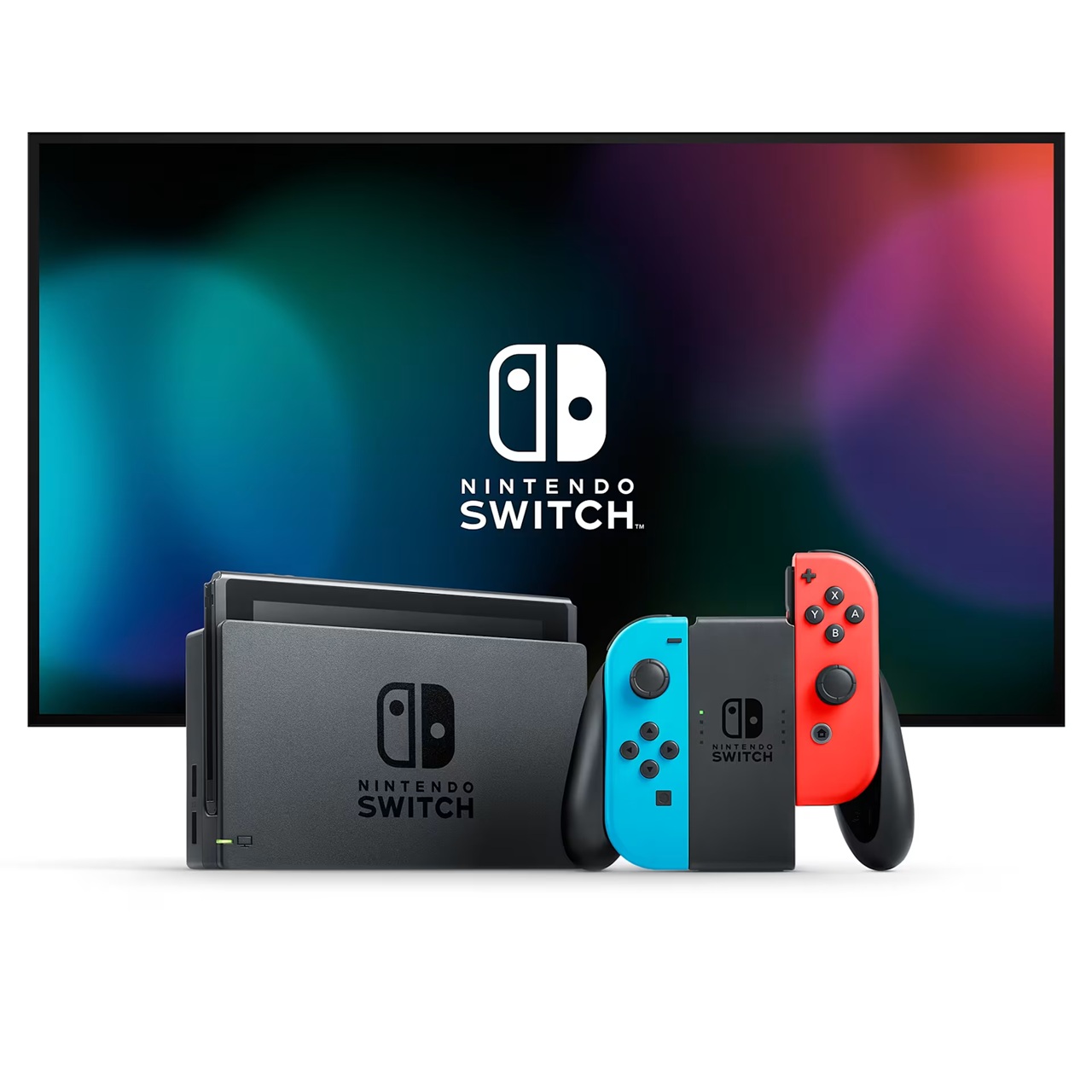 Nom du produit : Console Nintendo Switch avec manettes Joy-Con bleu néon/rouge néon.