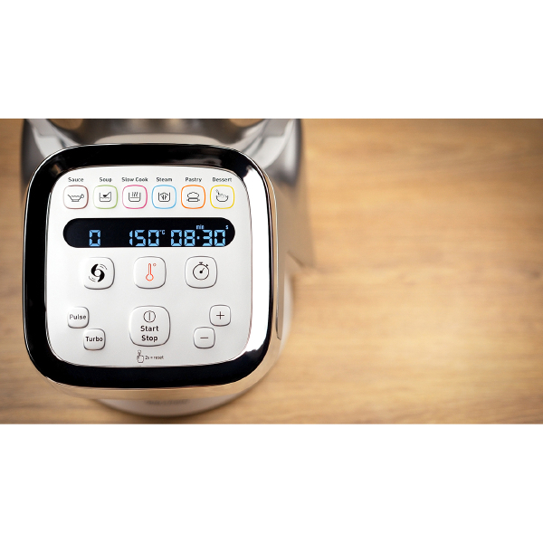 Il découpe, prépare et cuit, et garde même votre recette au chaud jusqu'à l'heure du dîner. 8 accessoires dédiés pour des résultats parfaits sur tous les types de préparations : Couteau hachoir, Couteau pétrin/concasseur, Batteur, Mélangeur, Panier Vapeur, Accessoire Fond Plat, Mini bol de cuisson et découpe-légumes.