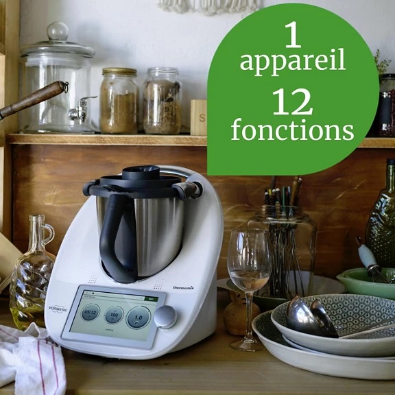 Grâce aux 12 fonctions intégrées du thermomix, vous pourrez avec un seul appareil moudre, hacher, mijoter, fouetter, peser, émulsionner, cuire à la vapeur, mixer, réchauffer, cuire, pétrir, mélanger.
