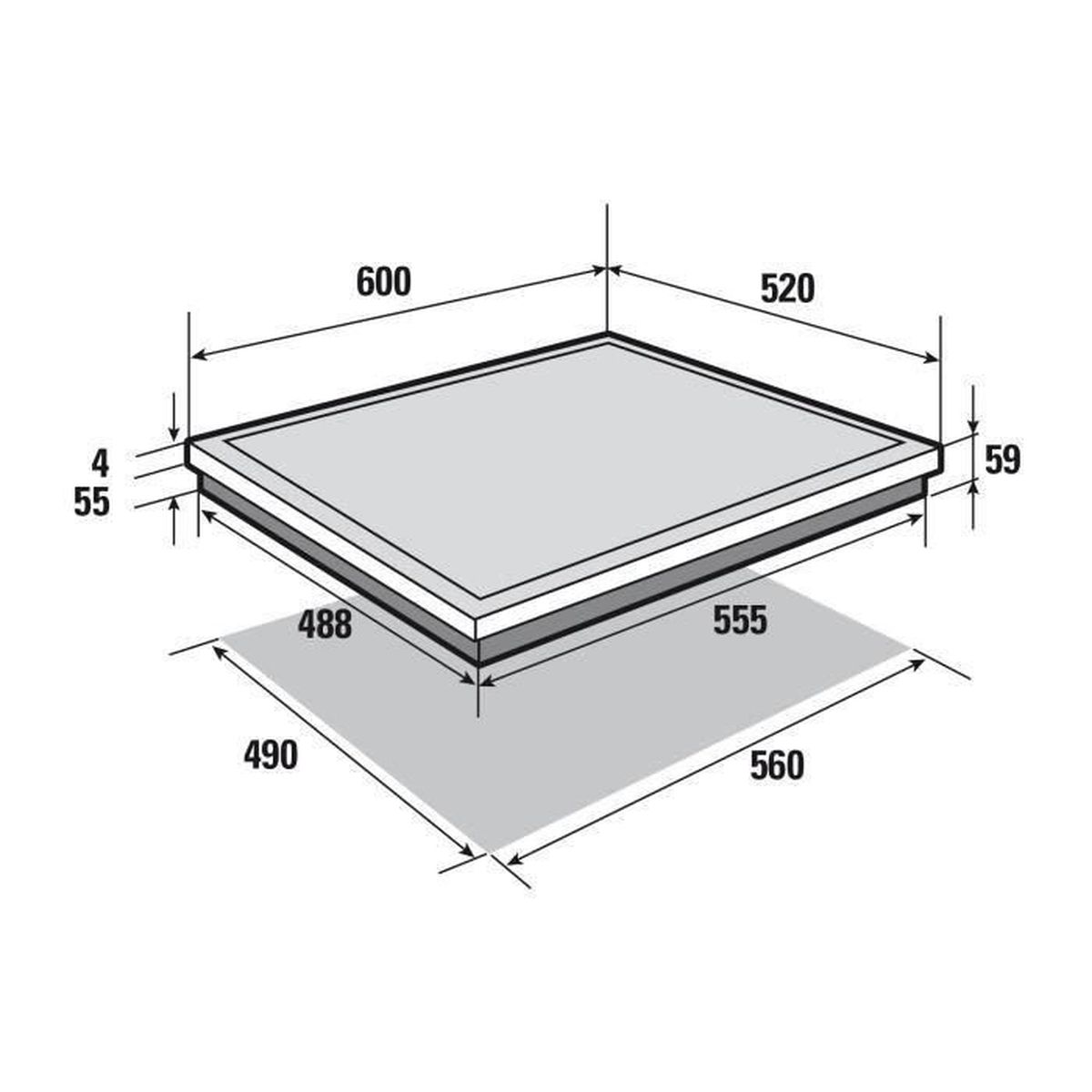 ° Dimensions (LxPxH) : 60 cm x 52 cm x 5.9 cm